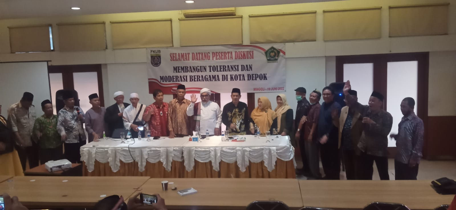 Forum Kerukunan Umat Beragama ( FKUB) Kota Depok menggelar diskusi dengan tema : Membangun Toleransi dan Moderasi beragama di Kota Depok, yang dihadiri oleh para majelis agama, berlokasi di Resto Simpang Raya Margonda, Minggu ( 19/6/22).