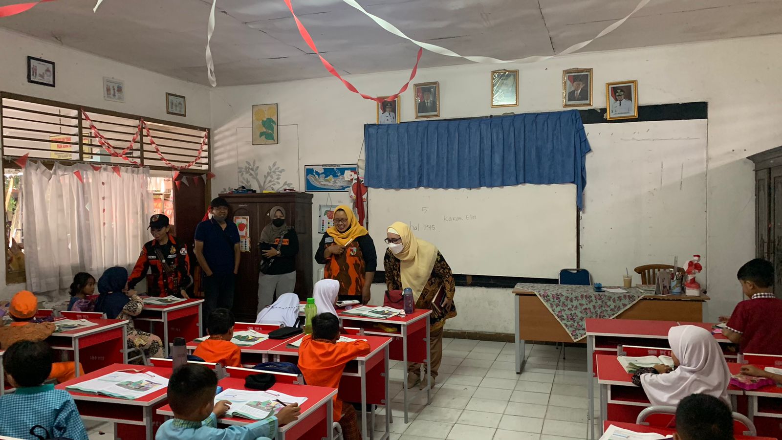 Retno Listyarti, Komisioner Komisi Perlindungan Anak Indonesia (KPAI) mengunjungi SDN Pondok Cina 01 Kota Depok pada Jumat (18/11). Sebelum berdialog dengan peserta didik dan orangtuanya, Retno juga menyempatkan diri untuk berkeliling seluruh ruang kelas, dari kelas 1 s.d. kelas 6 yang sedang melakukan proses pembelajaran yang dibimbing oleh relawan, baik dari unsur orangtua maupun aktivis Pemuda Pancasila Kota Depok.