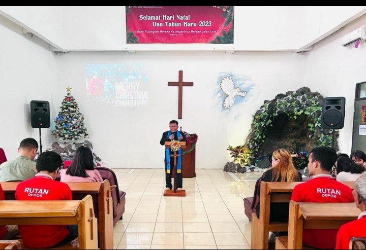 Suasana penuh khidmat warnai jalannya kegiatan Ibadah Natal Warga Binaan Pemasyarakatan (WBP) umat Kristiani. Kegiatan yang dilaksanakan di Gereja Oikoumene Anugerah Rutan Kelas I Depok ini berjalan dengan Khidmat, Minggu, (25/12/22).