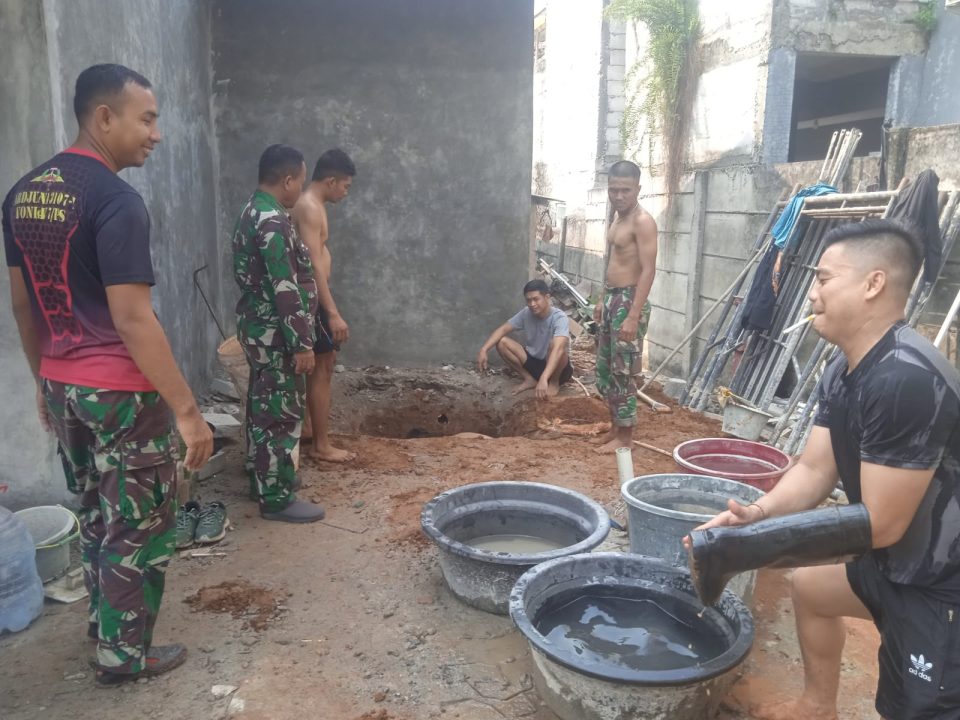 Dalam tahap terbaru, anggota satgas TMMD fokus pada pekerjaan penggalian untuk tabung septic tank dan pemasangan keramik di rumah Mulyani.