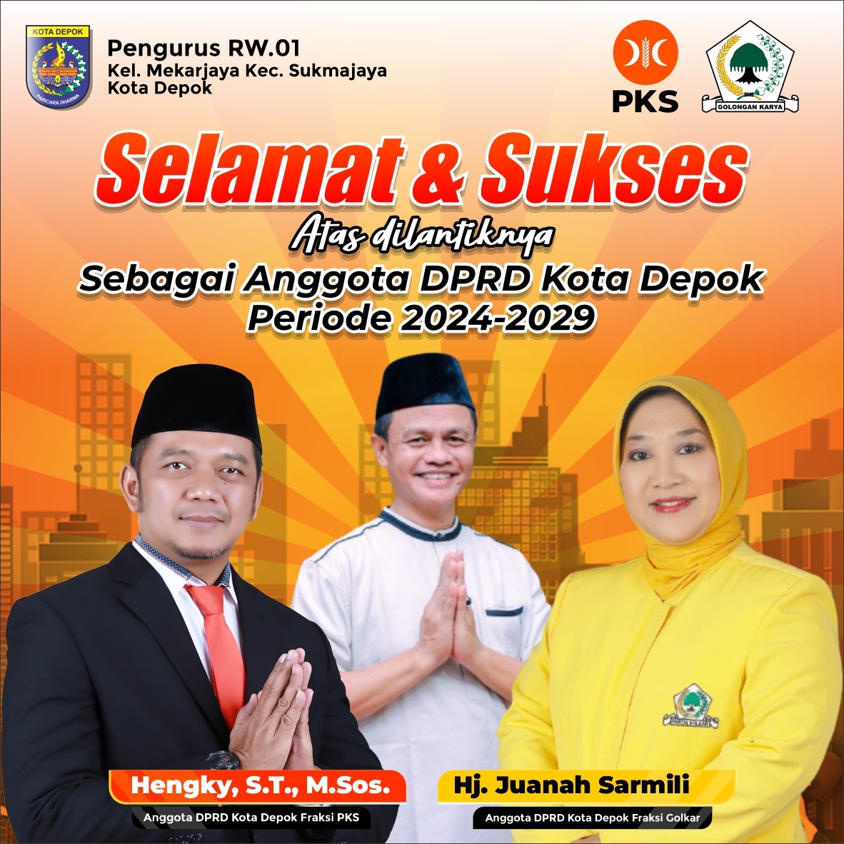 Ketua RW 01, Kelurahan Mekarjaya, Kecamatan Sukmajaya, Depok, Rohendi Budiyana, menyampaikan kebanggaannya atas terpilihnya kembali dua wakil rakyat tersebut. “Mereka adalah warga kami yang mewakili Dapil 4 Sukmajaya. Kami mengucapkan selamat atas terpilihnya kembali mereka sebagai anggota DPRD Depok,” ucap Rohendi.