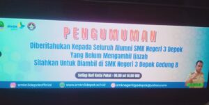 “Hingga kemarin, sekitar 100 ijazah sudah diambil. Kami mengimbau alumni SMKN 3 Depok untuk segera datang ke sekolah dan mengambil ijazah mereka,” tutupnya.