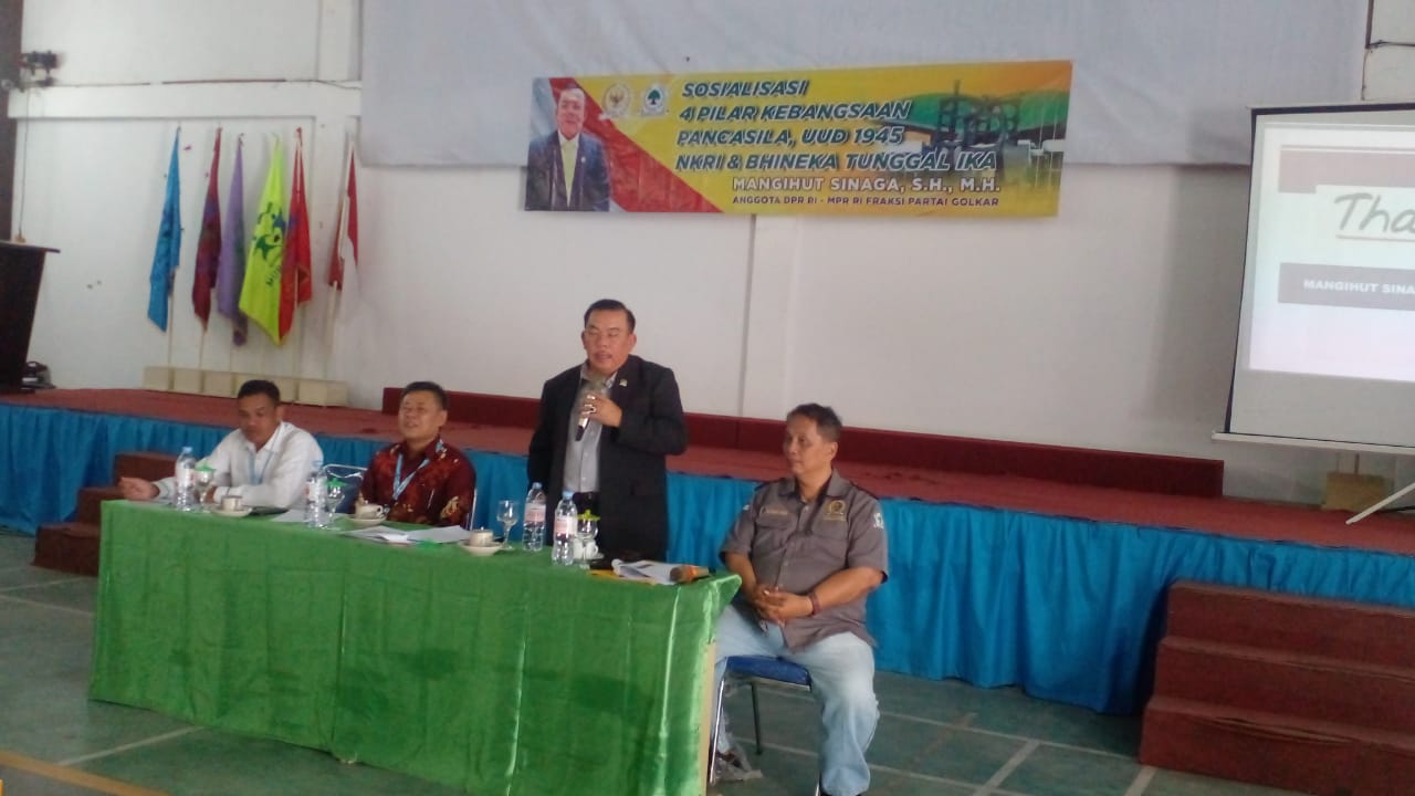 Anggota DPR RI – MPR RI Fraksi Golkar, Mangihut Sinaga, menggelar sosialisasi Empat Pilar Kebangsaan kepada lebih dari seratus lima puluh mahasiswa Universitas Murni Teguh (UMT) Pematangsiantar. Kegiatan berlangsung di Aula Kampus UMT di Jalan Sriwijaya, Kecamatan Siantar Utara, Sumatera Utara.