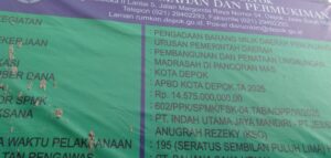 Depok – Laboranews.com | Pemerintah Kota Depok melalui Dinas Perumahan dan Permukiman tengah melaksanakan pembangunan dan penataan lingkungan Sekolah Madrasah di Kecamatan Pancoran Mas. Proyek dengan pagu anggaran sebesar Rp14,57 miliar dari APBD 2025 ini dikerjakan oleh PT Indah Jaya Mandiri – PT Jessica Anugrah Rezeky (KSO) dengan masa pelaksanaan 195 hari kerja. Pengawasan proyek dipercayakan kepada PT Bahana Saka Utama.