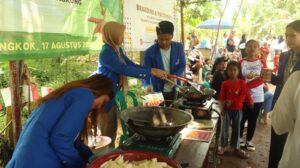 “Melalui program ini, kami memberikan pelatihan pengolahan singkong menjadi berbagai produk baru, seperti stik crispy, bola ubi, dan keripik singkong, sekaligus pelatihan pemasaran digital sederhana,” kata Dhandy. Tiga produsen singkong dipilih untuk mendapat pendampingan intensif, mulai dari praktik produksi, simulasi penjualan, hingga persiapan mengikuti bazar. Pelatihan juga menekankan standar kebersihan, teknik pengemasan, serta strategi menjaga kualitas produk agar dapat bersaing.