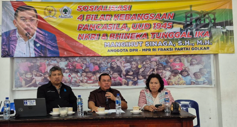 Pematangsiantar, 4 Oktober 2025 — Anggota MPR RI dari Fraksi Partai Golkar, Mangihut Sinaga, S.H., M.H., kembali menegaskan pentingnya penguatan nilai-nilai kebangsaan di kalangan masyarakat, khususnya generasi muda dan umat beragama. Hal tersebut disampaikannya dalam kegiatan Sosialisasi Empat Pilar MPR RI yang digelar di Kantor Sinode Gereja HKI Siantar, Kota Pematangsiantar, Sumatera Utara.