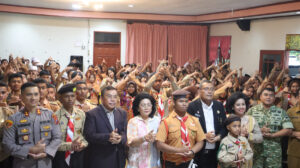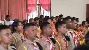 Gambar: Para audiens dari Gerakan Pramuka Dairi melakukan seremonial pembukaan