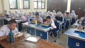 Antusiasme siswa tampak jelas saat menikmati makanan bergizi tersebut.
