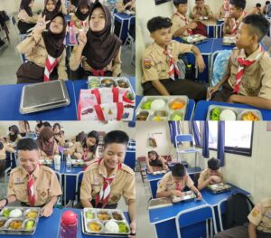Antusiasme siswa tampak jelas saat menikmati makanan bergizi tersebut.